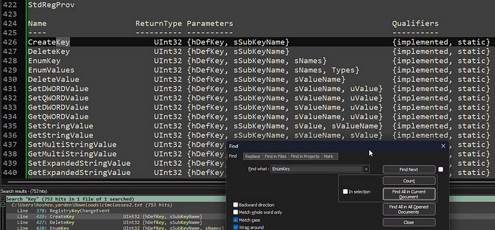 One useful WMI Provider Class we can find straight away by looking for registry keywords (Reg, Registry, CreateKey, DWORD, etc.) is the StdRegProv provider class. Just by looking at functions names for this provider class we can tell it looks useful and easy to work with.